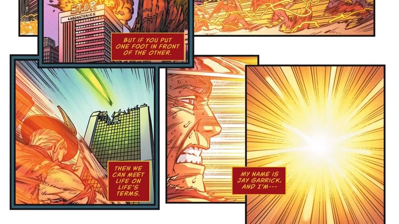 En Jay Garrick: El flash #6 Por Jeremy Adams y Diego Olortegui, Golden Age Flash corre por su vida para salvar a su hija Judy Garrick del Doctor Elemental. Elemental está usando a Judy como batería para alimentar un dispositivo que transformará a la población de la Tierra en metahumanos (al menos, aquellos que sobrevivan a la transformación).