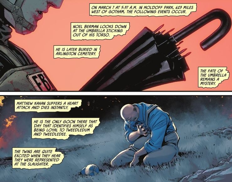 Aunque tonto en su concepción, la relevancia de The Tweedles en el canon actual de DC se coloca en una nueva perspectiva gracias a Batman matando el tiempo #5. En el trabajo de Tom King y David Márquez, hay una guerra entre matones que representan a todos los criminales de Gotham City. Si bien la mayoría de los villanos tienen múltiples representantes (una pandilla, en algunos casos), The Tweedles solo tiene un único fan que los representa. El fan, Matthew Kahan, no da mucha pelea ya que sucumbe a un ataque al corazón casi al instante, pero su presencia en nombre de The Tweedles destaca el impacto real que estos villanos subestimados de Batman realmente tuvieron en Gotham City.