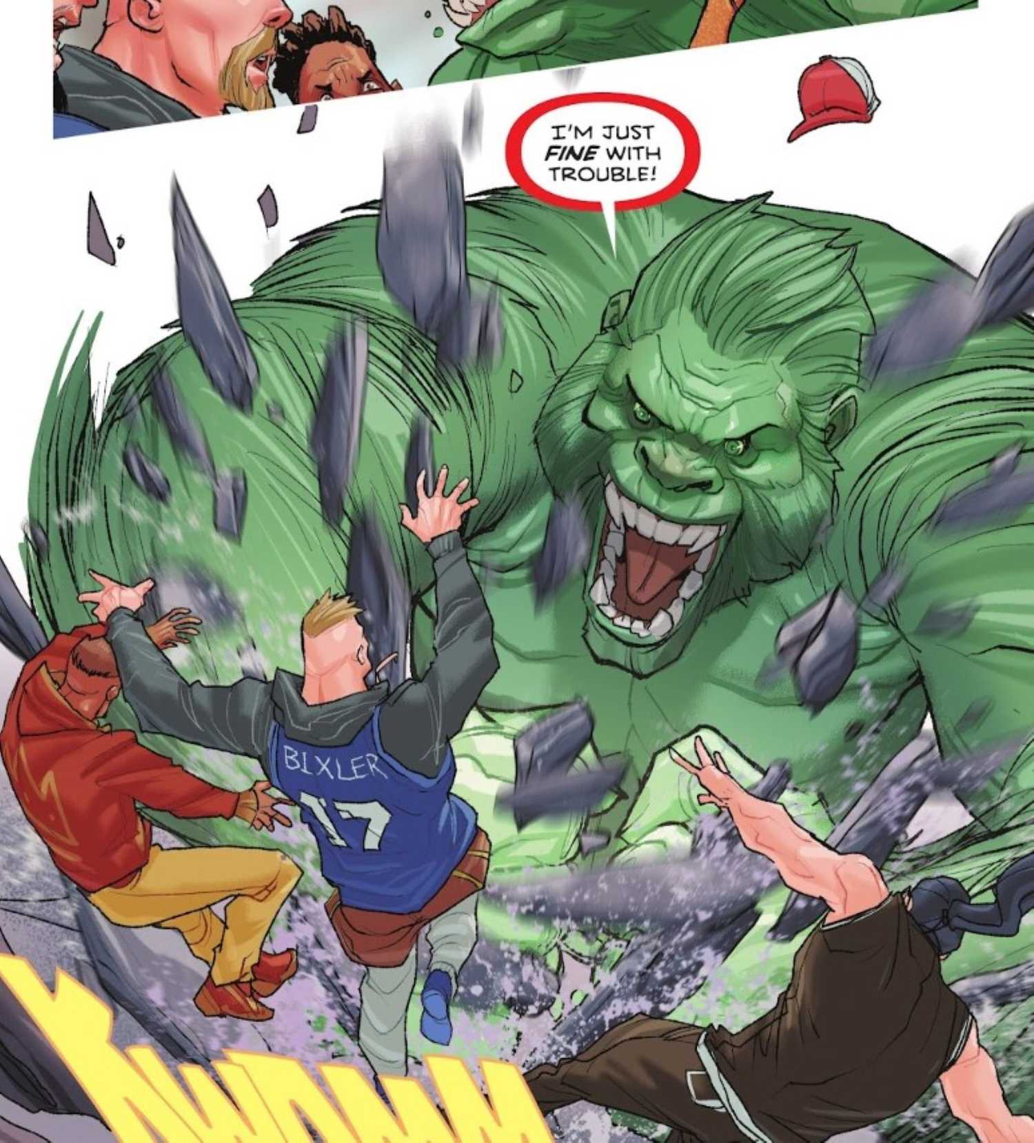El chico de la bestia de DC pone un giro en Hulk’s “Ese es mi secreto, Cap: siempre estoy enojado”.