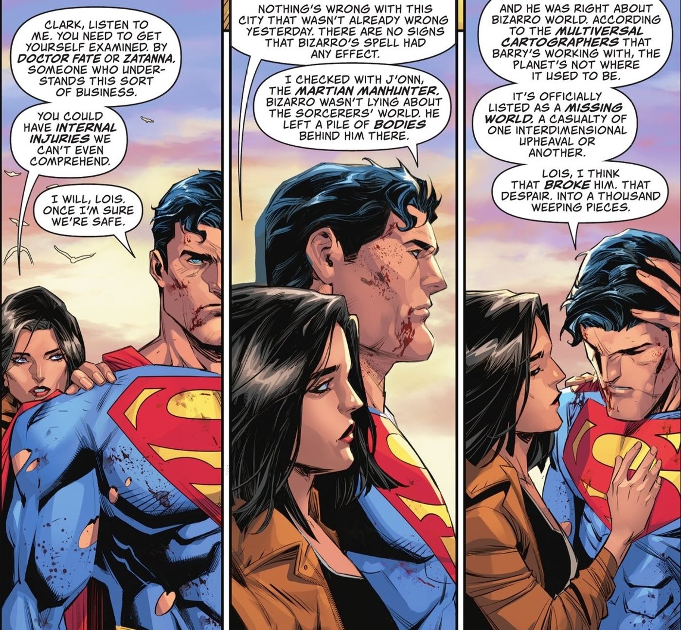 “/> Un mes y medio después, Bizarro ataca a Superman y le hace saber al Hombre de Acero que Bizarro World ha desaparecido. Bizarro revela que las interminables crisis y catástrofes han resultado en la desaparición de Bizarro World. Después de su lucha con Bizarro, Superman discute la situación con Barry Allen y descubre que Bizarro World ya no está y figura oficialmente como un mundo desaparecido.