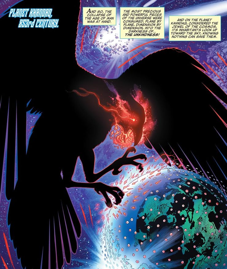 DC Estado futuro ha dado a los lectores un vistazo de un posible futuro no muy lejano, en el que tienen lugar una miríada de eventos y evolucionan héroes icónicos. A lo largo de varios títulos, incluidos Shazam, Flash, Jóvenes Titanes, y Escuadrón suicida una nueva criatura aterradora ha aparecido conocida como “la crueldad”, que es el término plural para cuervo. La entidad ha sido referida como un asesino de la realidad, y se reveló que es una versión corrupta de los lectores de Raven que conocen como miembros de los Jóvenes Titanes. El turno de Raven hacia el lado oscuro invoca la clásica historia de X-Men, Fénix Oscuro, que exploró la evolución de Jean Grey en un villano cuando fue consumida por una energía cósmica llamada Fuerza Fénix.