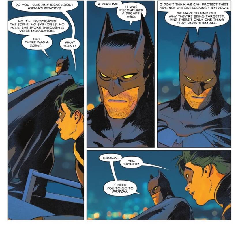 Batman le revela a Robin que durante su pelea con Asema, notó un aroma distinto, específicamente, un perfume. Elabora que esta fragancia en particular fue descontinuada hace una década. Esto significa que Bruce no solo reconoció el perfume exacto, sino que también tenía suficiente conocimiento para recordar el año en que salió de producción. Esto plantea una pregunta intrigante: El entrenamiento de Batman fue tan meticuloso que memorizó deliberadamente aromas ¿Y rastreó su historial de fabricación? Incluso para The Dark Knight, este nivel de conciencia es asombroso: identificar una pelea a mitad de perfume, especialmente mientras está en un estado drogado, es una hazaña impresionante.