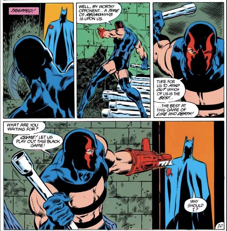 De los muchos villanos a los que se ha enfrentado Batman, ha evitado matarlos a todos. Pero ha estado muy cerca de utilizar fuerza letal contra KGBeast. Durante su primer encuentro, KGBeast intentó asesinar al presidente de los Estados Unidos. Batman luego persiguió a KGBeast hasta las alcantarillas. En lugar de enfrentarlo en una pelea uno a uno, Batman simplemente tapó la salida y lo selló adentro. La historia presenta esta táctica como Batman condena a KGBeast a morir de hambre. Un retcon posterior cambió la historia para que Batman le diga a la policía dónde encontrarlo.