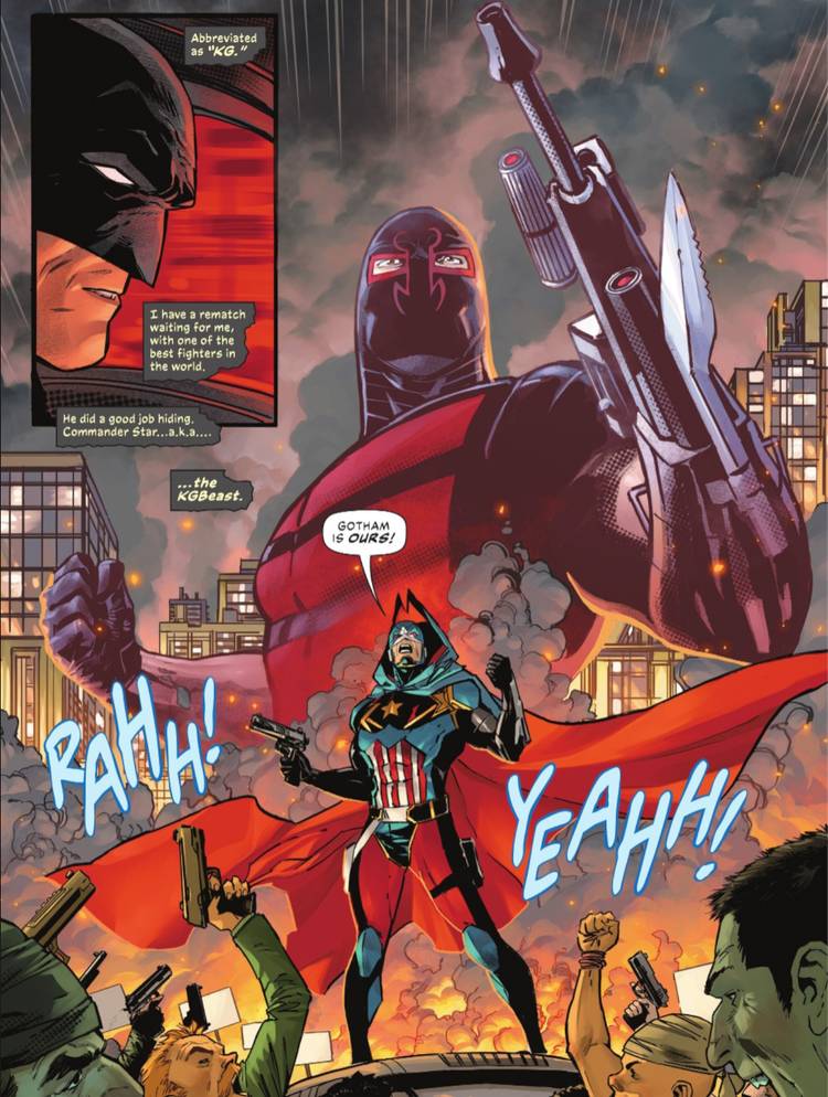 Mientras Batman estaba distraído por todo lo demás, no podía dedicar su brillante mente a descubrir la identidad del Comandante Star. Pero cuando se revela que la Corte de los Búhos trabaja para Rusia, Batman se da cuenta de que el Comandante Star sólo podría ser una persona en Ordenanza #156 de Chip Zdarsky y Tony S. Daniel. Commander Star es en realidad el villano que Batman casi ha matado ya dos veces: KGBeast.