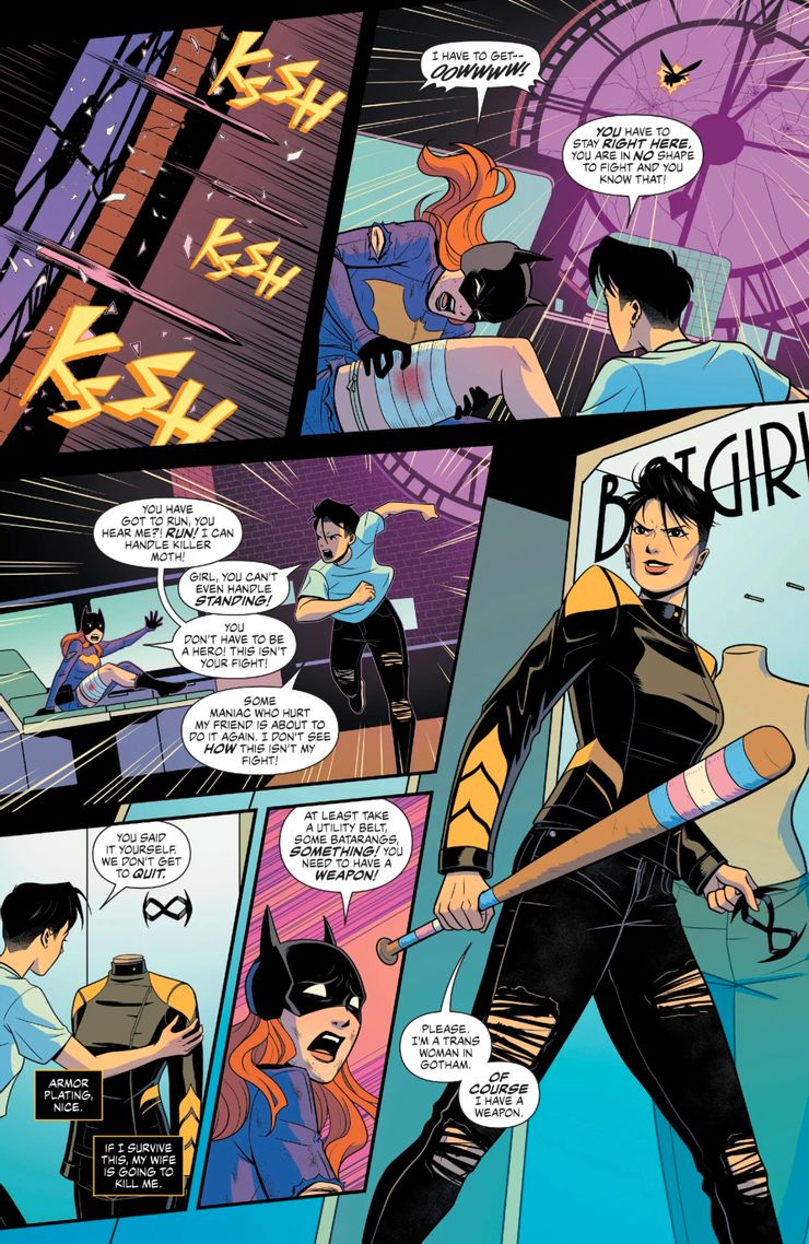 Este es un giro inteligente en el nombre porque hay muchas otras Batgirls que comparten el manto. Yeoh ha encontrado una manera de hacer suya su posición temporal como héroe y brillar como la mujer fuerte que es. Además, es un juego inteligente con el nombre para hacerla inmediatamente distinguible de los héroes que la precedieron. Sin embargo, sobre todo, logra demostrar que es una luchadora en más de un sentido. Su arco más grande en la historia es preguntarse de qué otra manera puede llevar su lucha por la igualdad fuera de su activismo. Se las arregla para demostrar su valía al enfrentarse a Killer Moth a su manera. Batgirl está tan impresionada que le permite quedarse con el traje.