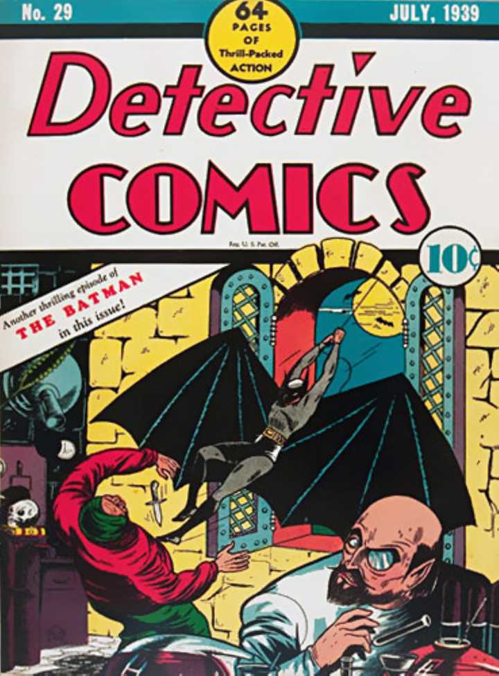 El panel de cómics proviene de Gardner Fox’s Cómics de detectives #29 (1939) – Art de Bob Kane