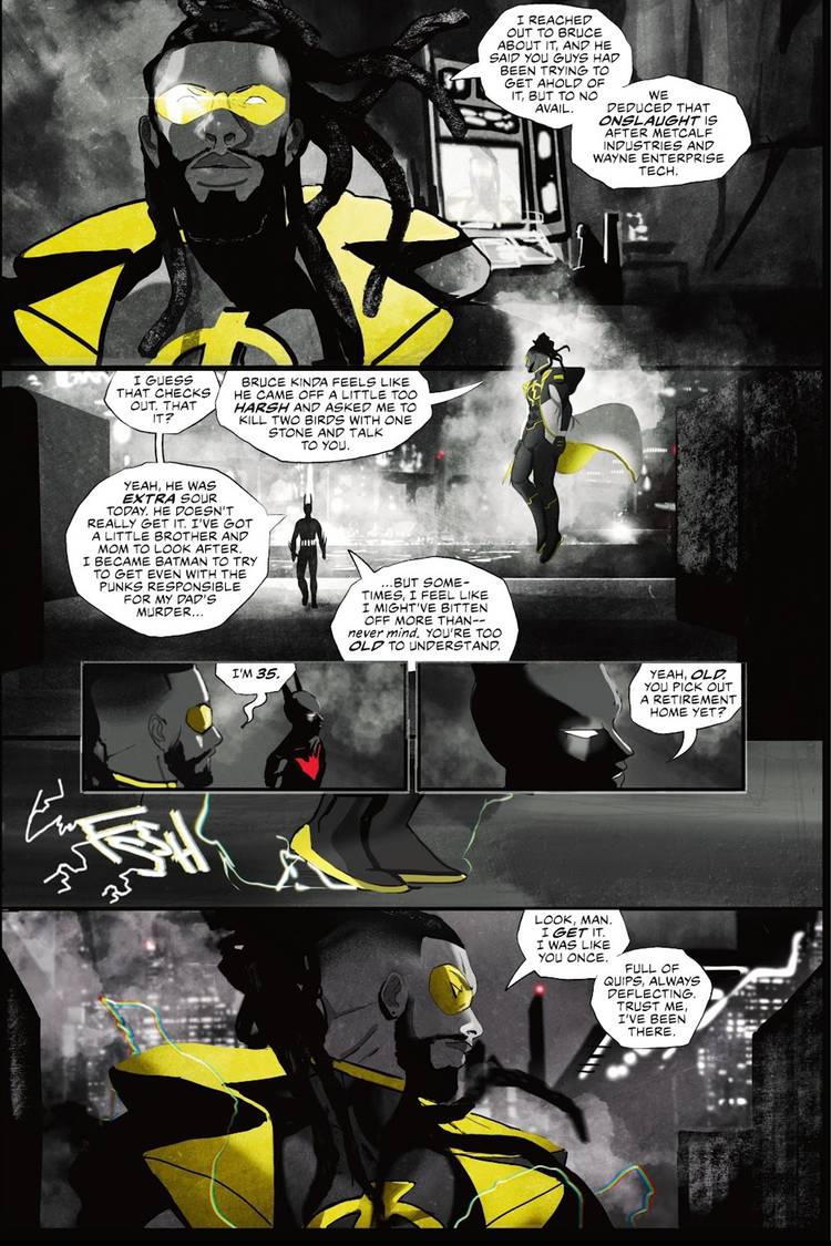 Static es un ex héroe adolescente que creció para asumir aún más la responsabilidad de su ciudad y el mundo en general, mientras que Terry todavía está descubriendo cómo hacer esas cosas a su manera. Terry sigue siendo un estudiante de secundaria, pero también tiene el peso del Mantle de Batman y las expectativas que vienen con él como partes clave de su vida ahora. Como miembro adulto de la Liga de la Justicia, Virgil está en una parte diferente de su viaje. Pero está impulsado por una adolescencia donde la injusticia sistémica cambió lo que significaba vivir en su ciudad natal de Dakota. Sus enfoques para hacer del mundo un lugar más seguro y justo son extremadamente diferentes. Esa diferencia energiza la gran pregunta con la que tienen que lidiar: ¿pueden aprender a trabajar juntos durante un momento crítico cuando todo lo que han dado por sentado se ha desmoronado? Todo el equipo creativo intentará responder esa pregunta en Batman/estática: más allá con una historia donde las emociones profundas chocan en el contexto de un futuro incierto.