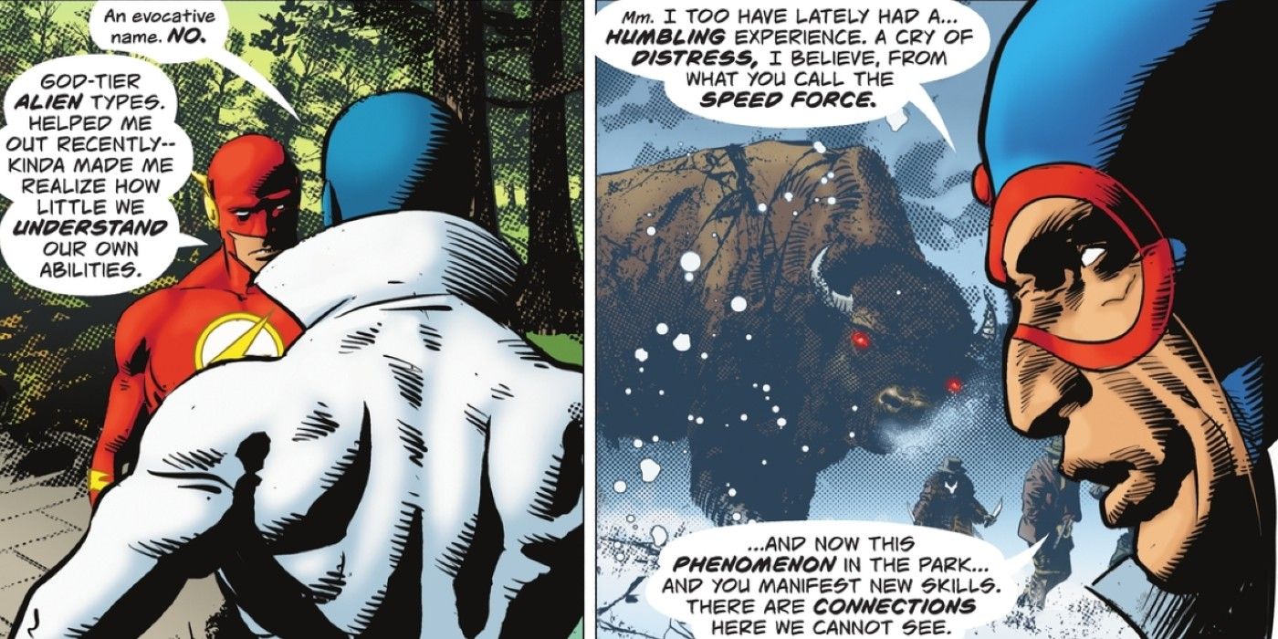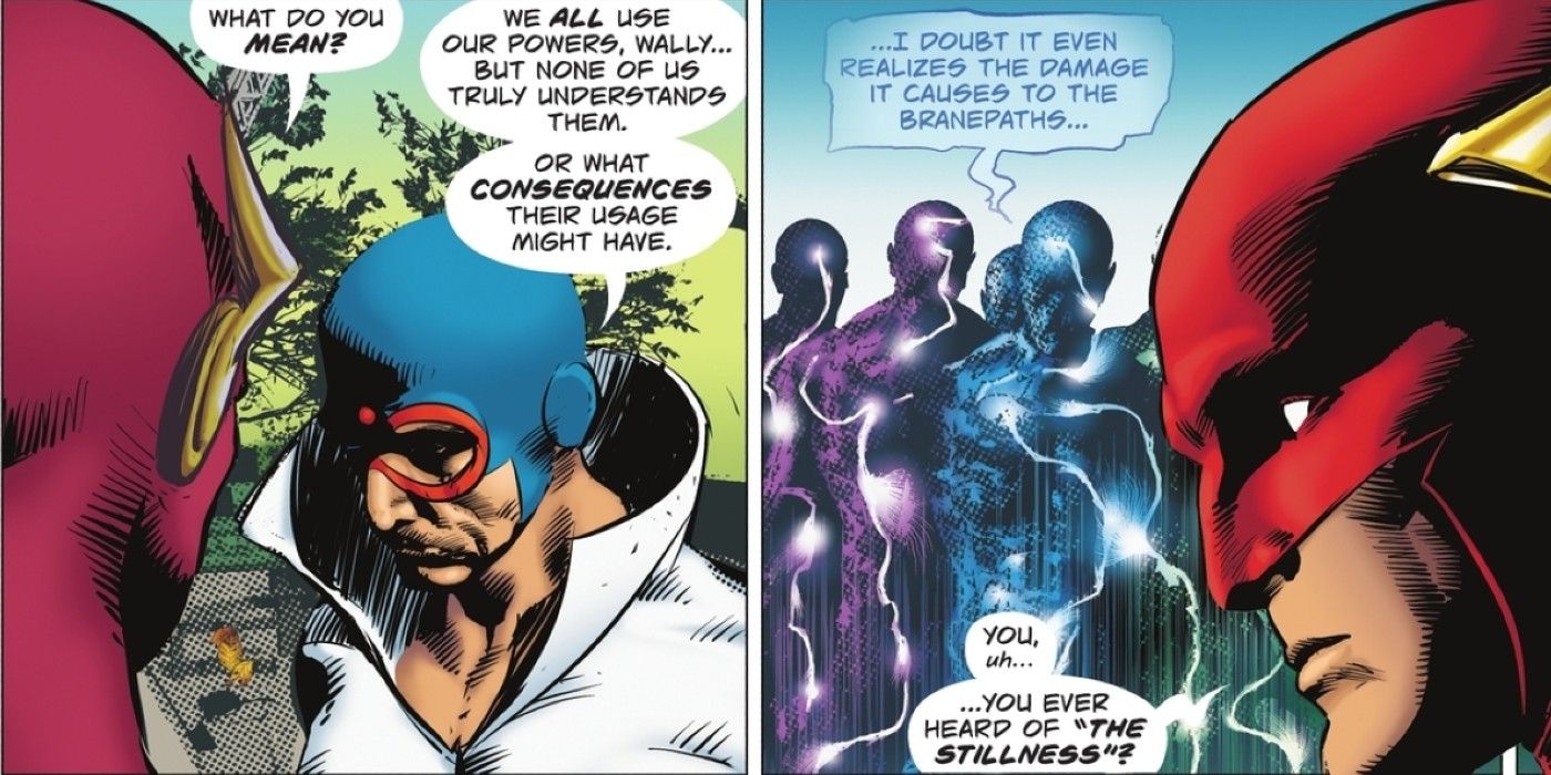 Los primeros tres números de Si Spurrier y Mike Deodato El flash han demostrado el punto de Max: hay mucho más en Speed Force de lo que pensábamos. Flash ha comenzado a desarrollar nuevos poderes, como la capacidad de salir de la realidad misma. Además, se ha encontrado con seres extraños parecidos a dioses en Speed Force, que se hacen llamar Stillness. Desesperado por encontrar respuestas, Wally ha recurrido tanto a su jefe Michael Holt (Mister Terrific) como a Max Mercury. Mientras que Holt adopta un enfoque más científico y racional, Mercury se acerca a la Speed Force de forma reverencial. Otros velocistas, como Jesse Quick, tienen sus propias formas de utilizar Speed Force.