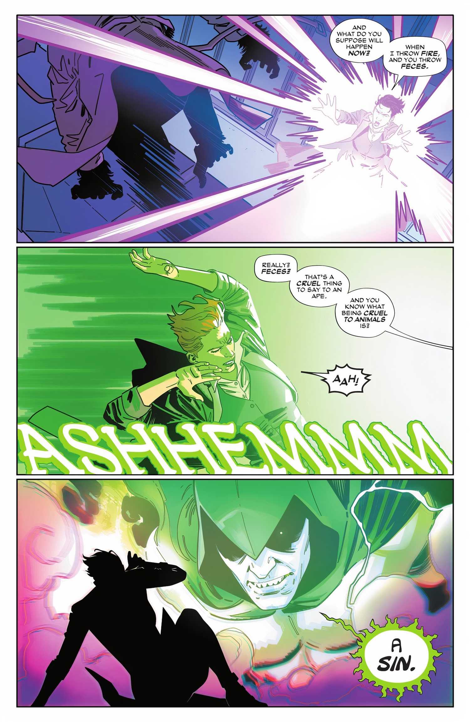 La etapa del Espectro como saco de boxeo para personajes más poderosos como Darkseid se produjo simplemente porque los creadores no estaban seguros de qué hacer con él. Sin embargo, King y Redondo aparentemente han encontrado un gran nuevo papel para el Espectro: el de interrogador. La capacidad del Espectro de mirar dentro del alma de una persona y ver qué mal ha cometido significa que nadie podría ocultarle la verdad. El Espectro pudo extraer información de Circe que resultó valiosa para el Detective Chimp, información que tal vez no habría obtenido de otra manera.