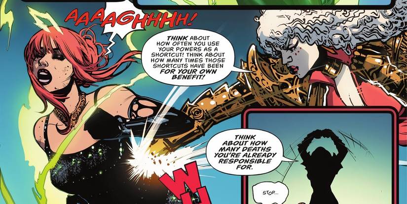 yo también siento como Si Omen realmente hubiera muerto, su muerte probablemente habría terminado con el problema.como suele ocurrir cuando ocurre la muerte de un personaje importante en un cómic. Imagina la muerte de todos los héroes importantes que puedas imaginar en los cómics. La impactante muerte suele ser lo suficientemente grande como para justificar ser el último panel de ese cómic, ¿verdad? Entonces, ¿por qué Omen, el principal actor secundario de Power Girl, sería la excepción? ¿Por qué, en cambio, terminar con la revelación de un supervillano que no hemos visto en diez números, como si eso fuera más grande que la muerte del compañero de Power Girl?