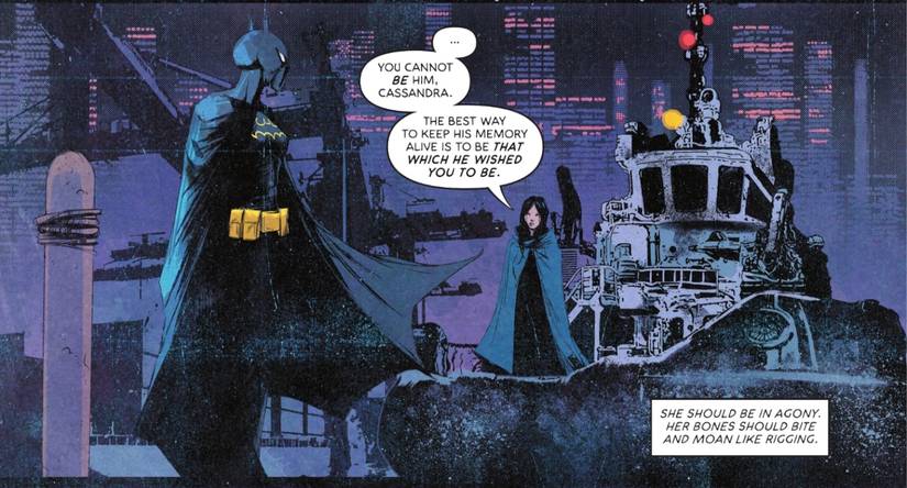 Cassandra honra a Batman de la única manera que sabe: cambiando sus patrones de lucha y movimientos para parecerse a Batman, como una forma de mantener viva su memoria.