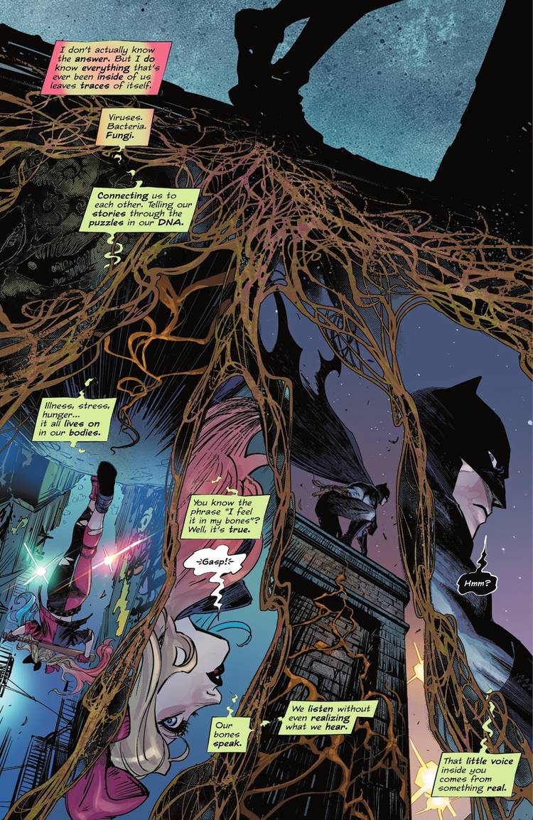 Mientras su cuerpo cambia visiblemente, Ivy forja una conexión con la vida más profunda de la que jamás haya sentido y describe la intrincada red que conecta a todos los seres vivos: una red que todos escuchan “sin siquiera darme cuenta de lo que [they] escuchar.” Sus palabras suenan verdaderas, y la llamada silenciosa que envía al universo al menos parece llegar a Batman en Gotham City. Ella admite que todavía no tiene dominio sobre la vida vegetal como antes, pero lo ha superado y ahora tiene un tipo de poder completamente diferente, uno que Woodrue no puede esperar captar ni derrotar.