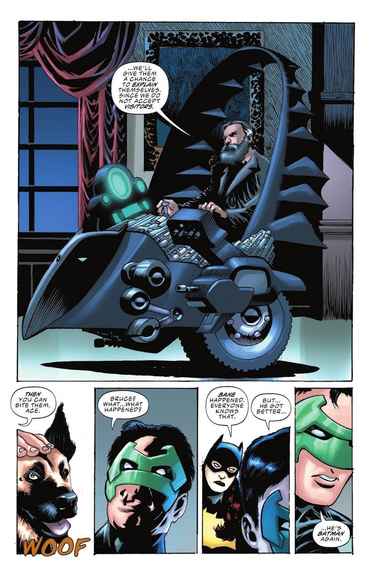 En las profundidades de Wayne Manor se encuentra un Bruce Wayne paralítico que vive como un ermitaño en su mansión y utiliza una silla de ruedas de alta tecnología para desplazarse. Realidad donde Bane realmente rompió el Murciélago – y el Murciélago nunca regresó.