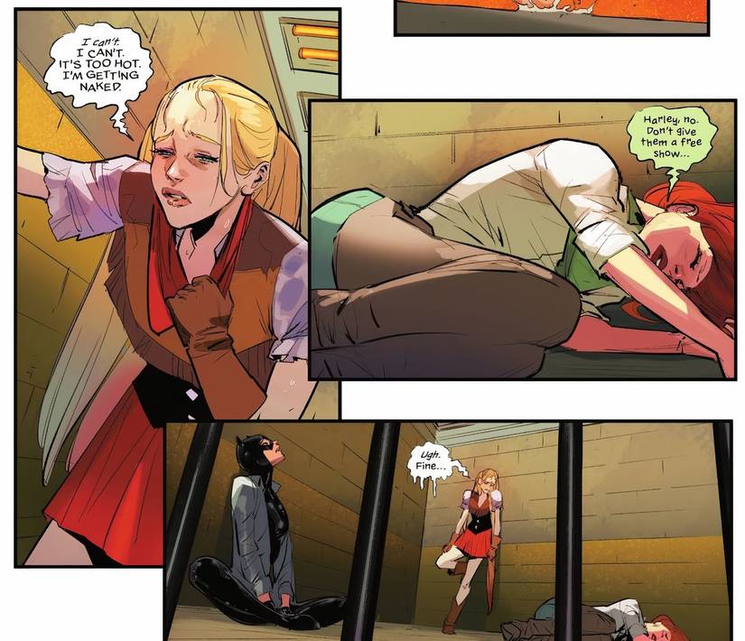 A pesar de los esfuerzos del trío, Punchline se impone y los encarcela en una de sus celdas. Sube la temperatura con la esperanza de deshidratar a las sirenas lo suficiente para obligarlas a beber sus bebidas energéticas que controlan la mente. Es durante esta escena de la celda acalorada que DC revela la Kriptonita de Poison Ivy: calor excesivo.