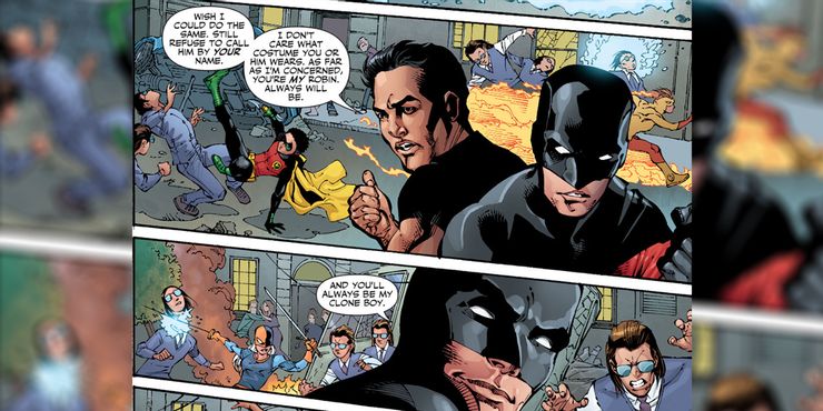 Asimismo, en Titanes adolescentes # 92, después de que Conner regresa y descubre que Tim ya no es Robin, sino Red Robin, comenta que se niega a llamar a Damian Wayne por el antiguo nombre en clave de Tim. Conner dice: “No me importa qué disfraz usen tú o él. En lo que a mí respecta, eres mi Robin. Siempre lo será “. En respuesta, Tim se da la vuelta para mirar a Conner y dice:” Y tú siempre serás mi chico clon “.