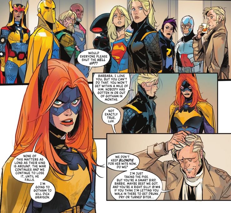 Habiéndose unido al pequeño movimiento de resistencia de héroes que lograron sobrevivir, Batgirl no está tan interesada en salvar a los pocos sobrevivientes que pueden en el nuevo DC contra vampiros #7. En cambio, quiere asaltar las puertas de Gotham e ir directamente tras el Rey Vampiro, claramente queriendo vengarse de Nightwing por lo que le hizo a su familia y al mundo entero. Sin embargo, se revela que Gotham es prácticamente impenetrable, habiéndose convertido en el reino oscuro del Rey Vampiro a raíz de la conquista global de los vampiros.