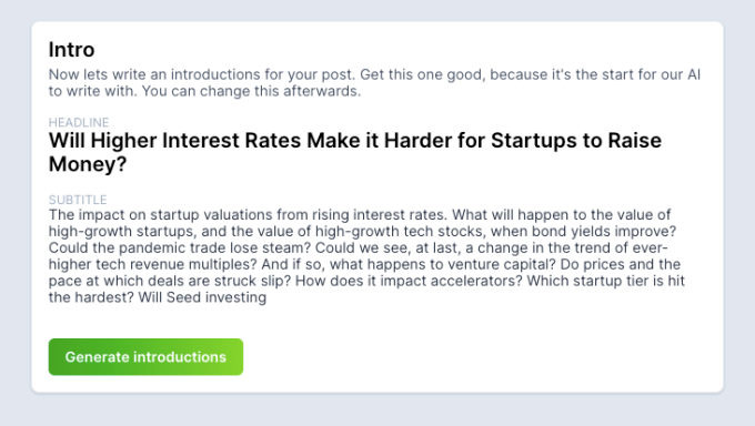 ¡Es hora de dar el siguiente paso! Al presionar el botón, apareció una lista de posibles titulares para la publicación que estaba ayudando a crear, que honestamente no eran terribles: