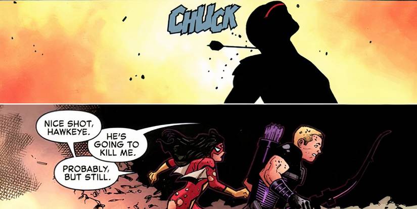 Uno de los telépatas más poderosos del mundo, junto con la ayuda adicional del propio hechicero Supreme, Doctor Strange, solo podía contener a Cyclops durante unos veinte segundos antes de que usara su inmenso poder de Phoenix para liberarse. Sin embargo, Hawkeye decide posicionarse justo al frente, de alguna manera pensando que sería una buena idea apuntar a este enemigo de nivel de Dios de cerca y personal. Probablemente haya una probabilidad de menos del uno por ciento de que realmente derribara los Cyclops con fénix, pero eso es lo suficientemente bueno para Clint.