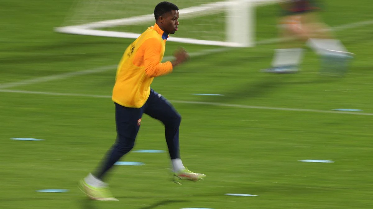 DirectoAnsu Fati entrena en Riad para el partido del Barcelona contra el Real Madrid.ALBERT GEA (REUTERS)