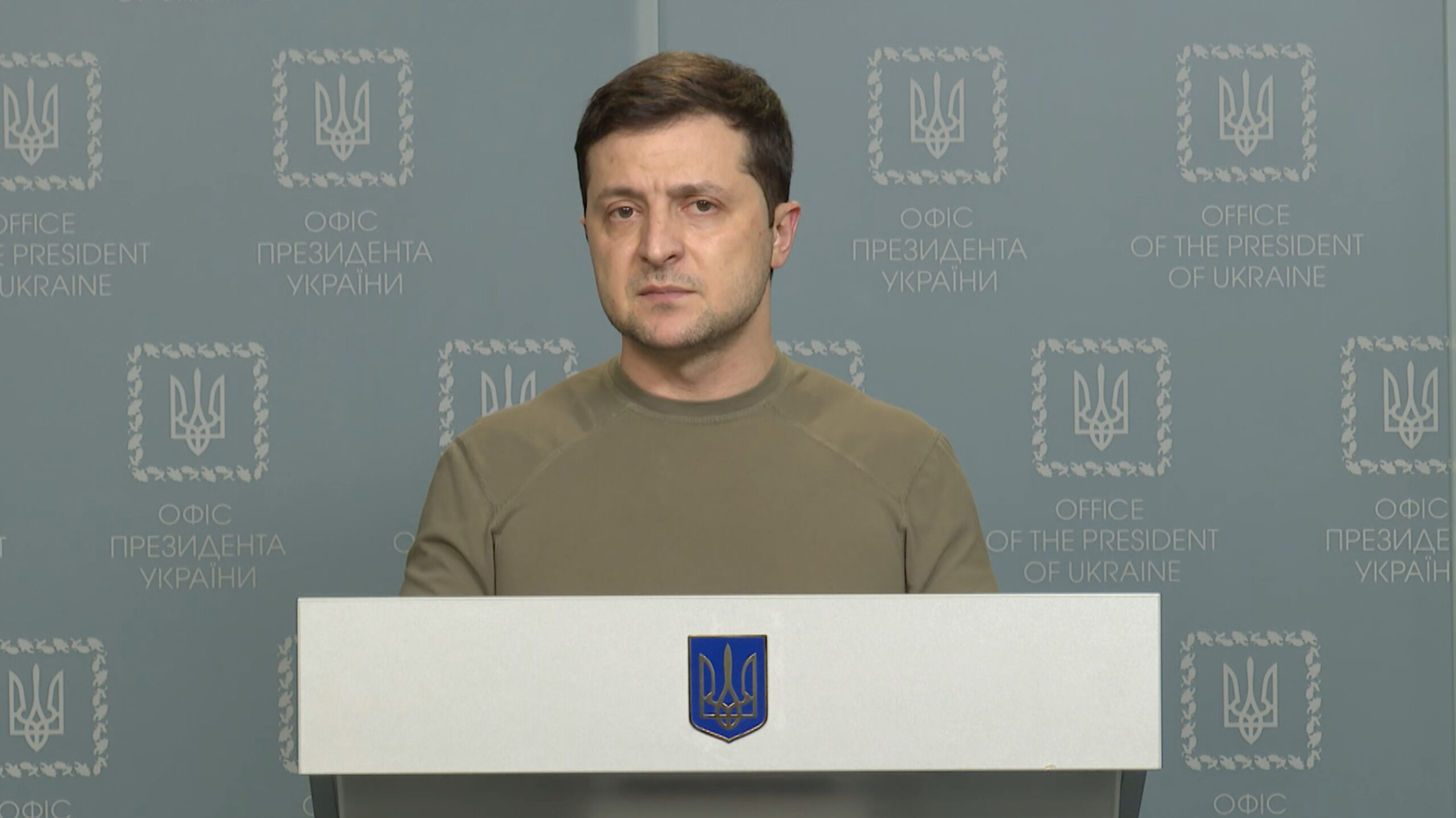 El presidente ucraniano, Volodímir Zelenski, salió hoy a la calle en el barrio gubernamental rodeado de su equipo más cercano para afirmar en un vídeo que el Gobierno sigue funcionando y él y sus asesores están en Kiev trabajando para defender el país de la invasión rusa.