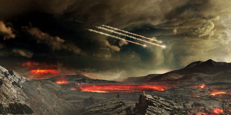 Se cree que los primeros orígenes del planeta Tierra fueron violentos y calientes, lo que haría hervir el agua preexistente, dejando una tierra rocosa y seca. Pero, por supuesto, la Tierra actual demuestra que una gran cantidad de agua llegó al planeta de alguna manera, lo que presenta un desafío para que los científicos lo resuelvan. Los meteoritos en el Sistema Solar tienen contenido de agua, y una teoría popular es que estos proporcionaron el agua de la Tierra.