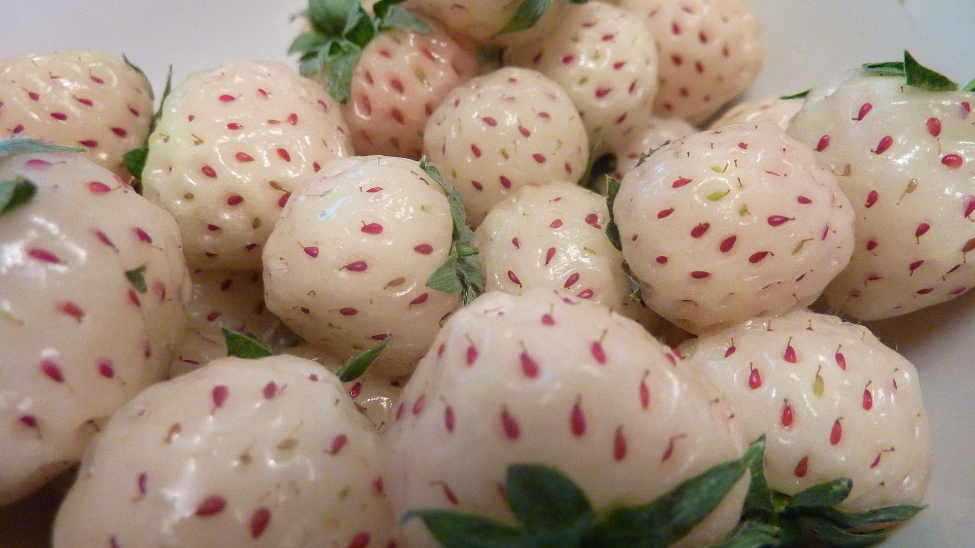 También conocidas como alma blanca o pineberry, hablamos de unas pequeñas bayas que, como su nombre indica, poseen un color blanco diferente a lo habitual, acompañado de unas hojas verdes, y de aquenios rojos con un olor muy penetrante, y un gusto en el paladar similar al que posee la piña.