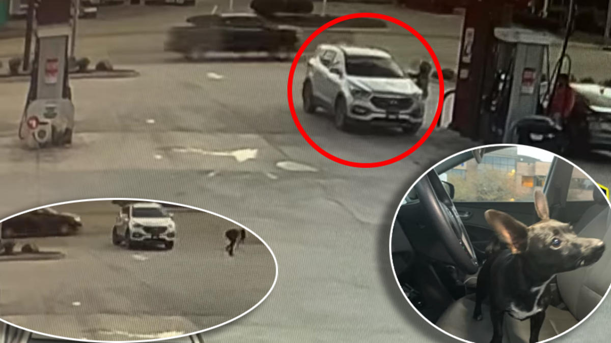 Un chihuahua de 5 libras, que estaba dentro del auto SUV, puso el vehículo en reversa. El auto rodó hacia atrás y casi de milagro cruzó la avenida de cuatro carriles y llegó a la estación de servicio al otro lado de la calle sin que otro auto impactara contra el mismo.