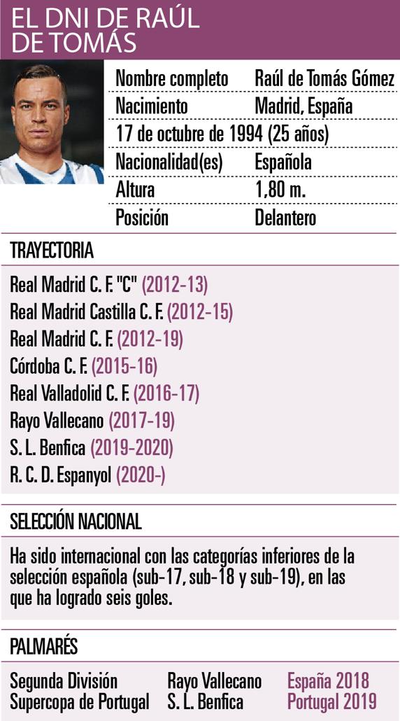 De Tomás ha estado acompañado en su puesta de largo del vicepresidente Carlos García Pont y de Rufete, Director de Fútbol. El primero ha confirmado que el Espanyol “tiene el 100% de la ficha de De Tomás y que el Benfica se reserva un 20% de la plusvalía de una futura venta”.