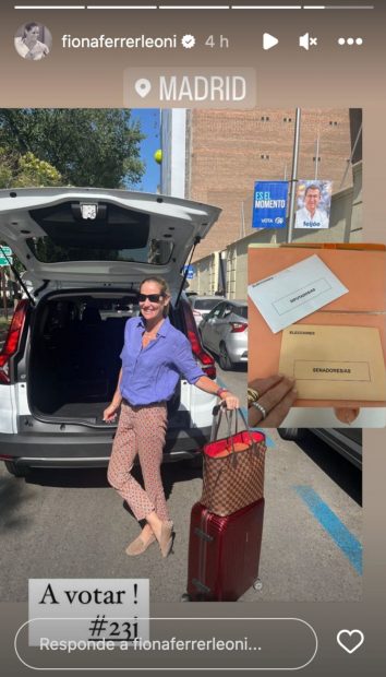Mario Casas, igual que Almudena Cid, también se ha despertado pronto para votar. Después ha estado en el gimnasio y lo ha contado todo en Instagram. La misma red social que ha usado Fiona Ferrer para lanzar un mensaje que considera necesario. «Hoy vota, lo que te dé la gana, pero vota. Rumbo a casa par formar parte de un día histórico. La suerte no llega, se busca y se trabaja. Quejarse sin poner remedio es lo mismo a no hacer nada», ha escrito. Fiona ha paralizado sus vacaciones por las elecciones del 23-J.