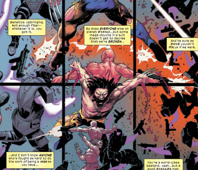 Mientras están unidos, luchan contra los soldados de Delta mientras se comunican telepáticamente (o bilepatía, como lo llama Deadpool). Deadpool aprovecha la oportunidad para elogiar constantemente a Wolverine, llamándolo un “Bastardo de clase mundial, sí… pero un buen hombre.” Por supuesto, es con Wolverine con quien está hablando, y Logan no es exactamente receptivo a palabras amables, por decir lo menos. “Cuando dices vete a la mierda, escucho que te amo” Es, no obstante, el regreso de Wade. Al final de la historia, cuando Deadpool pregunta si su próximo encuentro será amistoso, Wolverine no responde directamente, pero sonríe mientras entran en acción una vez más..
