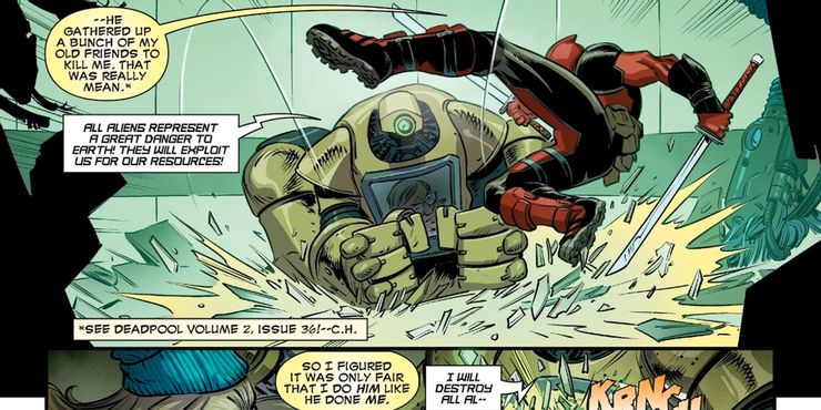 Deadpool llamando a esto cae dentro de la timonera del personaje, pero exagerar el sentimiento de Stephen Hawking en el comportamiento literal de un supervillano es algo completamente diferente. No es frecuente que una figura del mundo real aparezca en los cómics más allá de una referencia divertida o inteligente, por lo que ver a Stephen Hawking asumir el papel del villano Space Hawk es intrigante. Desafortunadamente, no puede hacer mucho más que atacar a Deadpool y escupir algo anti-hora del Este sabiduría antes de ser eliminado por un golpe perdido de uno de sus aliados. Hubiera sido genial si Space Hawk realmente pudiera debatir con algunos de los heroicos alienígenas o genios científicos de Marvel.