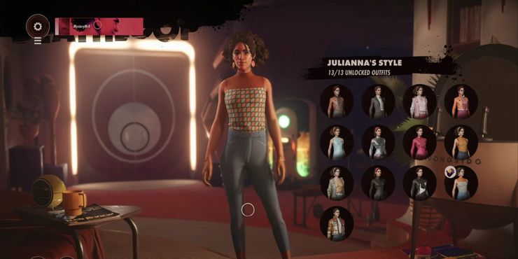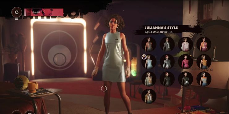 Como sugiere su título, “Deja Funk” es un atuendo retro maravilloso y elegante usado por Julianna es uno de sus looks más caseros. Sin signos visibles de contrabando violento en su persona, es un disfraz ideal para que el personaje lo use cuando trata de mantener un perfil lo más bajo posible.