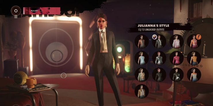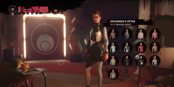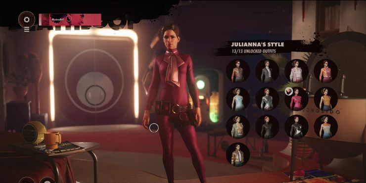 Mientras que los trajes Shine On y Black Matte se adhieren a un estilo similar de body ajustado conocido como “Pamplemiss”, la impresionante variación Fuschia de Julianna luce en Deathloop es el más memorable. Lo que realmente hace que el atuendo se destaque es la corbata de seda rosa brillante.