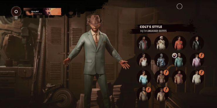 Si bien comparte un corte similar al traje Undercover, el atrevido conjunto “Blue Note” de Colt es uno de los looks más atractivos del soberbio juego de disparos en primera persona. Un nombre un poco inapropiado, el deslumbrante traje de tres piezas color aguamarina viene con un sombrero de fieltro marrón tipo Indiana Jones que combina perfectamente con el pañuelo de bolsillo de Colt. Observe cómo la corbata de oro brillante refleja perfectamente la banda del fedora.