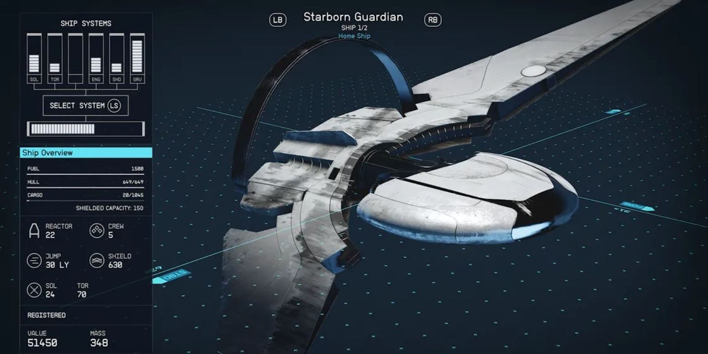 Una vez que los jugadores completen el Un salto gigante búsqueda en campo estelar, la misión final del juego, ingresan a un nuevo universo con sus habilidades y experiencia intactas. Se eliminan todos sus créditos y armas, pero se les concede la nave Starborn Guardian, que cuenta con una excelente distancia de salto, abundante combustible y mucha capacidad de carga. Los jugadores también reciben el Starborn Spacesuit Astra, uno de los mejores trajes del juego, gracias a su protección ambiental y su naturaleza todo en uno, que combina un casco y un paquete de refuerzo en un solo elemento. Con este barco y traje, los jugadores son libres de explorar cualquier terreno peligroso y no están limitados por la distancia de salto ni por cuestiones de combustible.