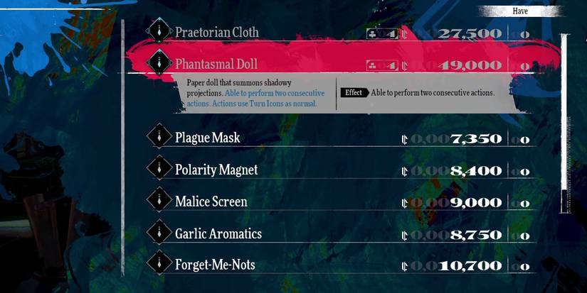 Hay muchos comerciantes en el juego que pueden vender equipo e ingredientes importantes, al igual que Metáfora: ReFantazio Tendero cauteloso una vez que se desbloquea su inventario. El hecho de que Phantasmal Doll solo esté disponible en la tienda Gloamhall de Grand Trad por la noche también hace que parezca una compra importante que cualquiera se arrepentiría de haberse saltado. Una vez que se revela toda la profundidad de sus habilidades, resulta que no es tan útil en tantas situaciones como podría pensar.