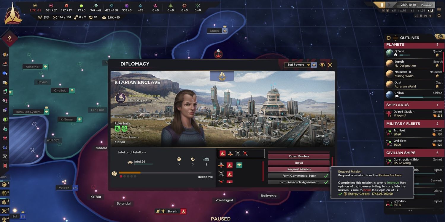Star Trek: Infinito es muy similar en estilo al juego estelar, y está construido sobre la misma base básica y los mismos sistemas centrales de ese juego, incluso siendo fabricado por la misma empresa: Paradox Interactive. Los jugadores pueden reclutar al familiar. Star Trek personajes que coinciden con su facción y tienen acceso a muchas de las naves espaciales de la serie. Desafortunadamente, el USS Enterprise no llega de inmediato, pero eso lo hace aún más gratificante cuando está disponible por primera vez después de completar los requisitos necesarios.
