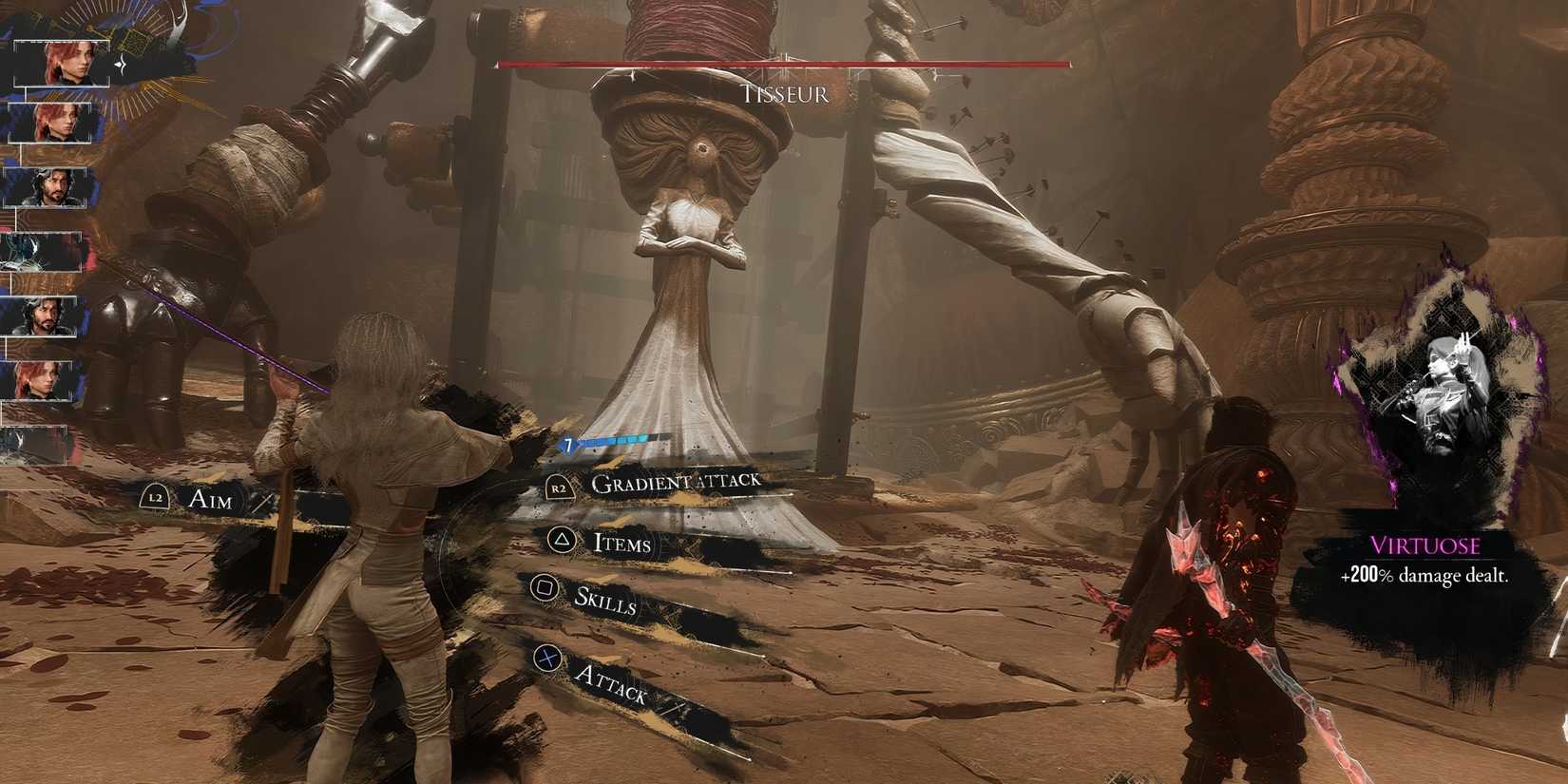 El tisseur no es tan difícil de ser un jefe si estás configurado adecuadamente con habilidades y armas basadas en la luz en cada uno de tus miembros activos de la fiesta. En particular, recomiendo Lune y Maelle, incorporando habilidades como