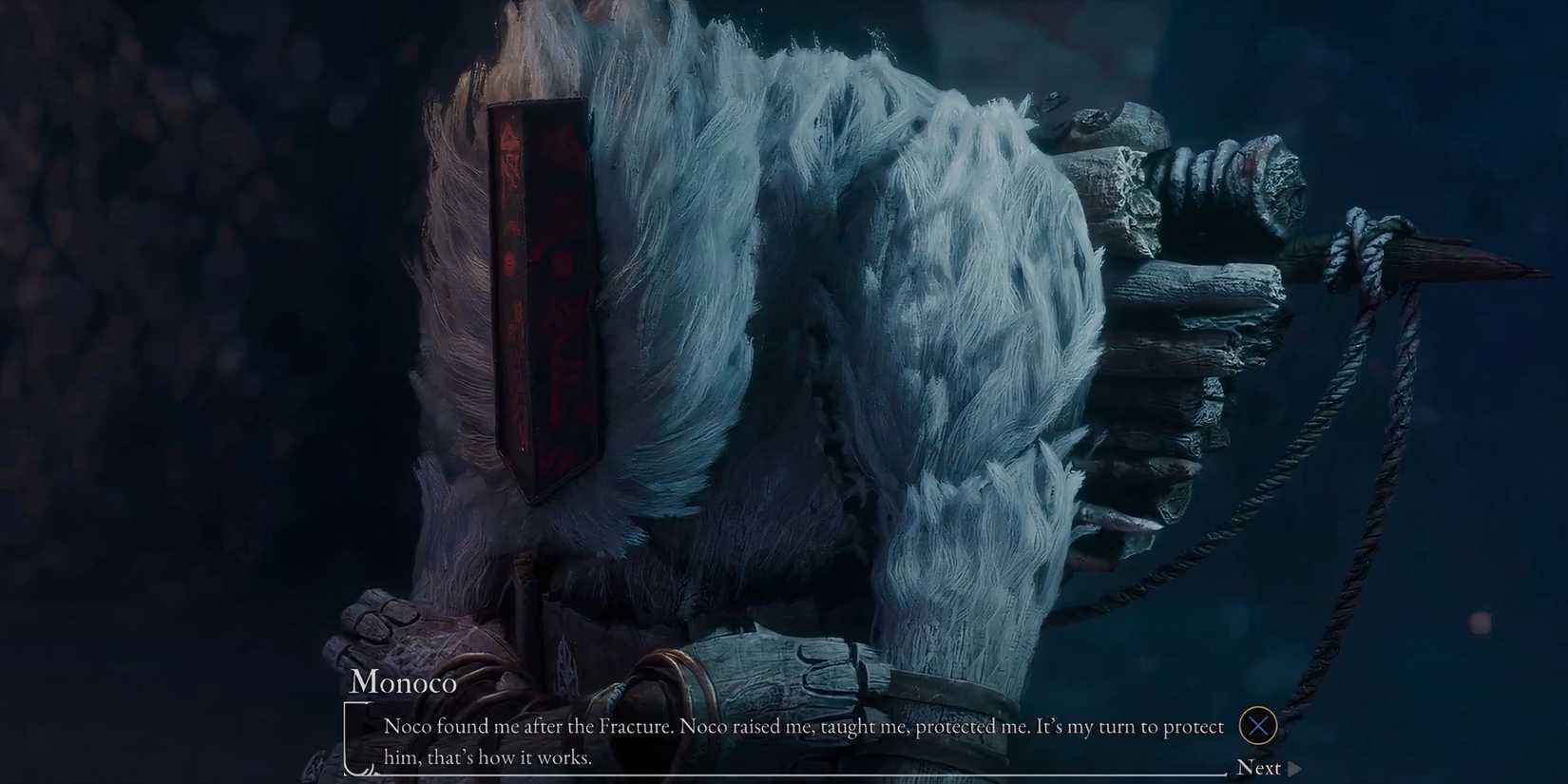 A medida que te acercas a Monoco durante ClaroLa historia principal, se hace obvio lo importante que es Noco para él. Monoco y Noco no solo son mejores amigos, sino más bien como padre e hijo, y Monoco es destripado cuando Noco perece. Sin embargo, los gestrales tienen el beneficio único dentro del lienzo de ser resucitado en un lugar llamado río Sagrado, siempre y cuando esperen su turno. Necesitas viajar a Sacred River para completar la línea de búsqueda de Monoco, Y hacerlo implica dar vida a Noco, pero él no será el mismo.