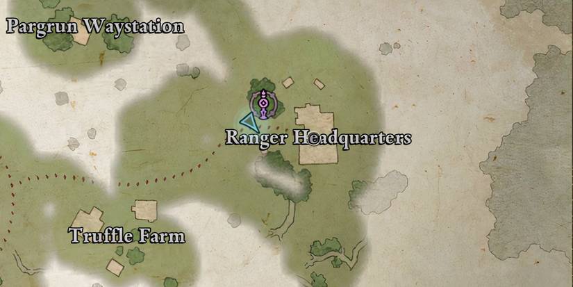 Una vez que hayas adquirido el mapa del tesoro de los bolsillos prácticos de la cervecera de ector en la mazra talentosa, la pista explica muy pesado que “[a] Good Ranger está preparado para cualquier desafío, pero el mejor Ranger tiene bocadillos a mano “. El uso de “Ranger” dos veces en la línea de pista debería ser un sorteo muerto para la ubicación del cofre del tesoro, pero si no ha explorado mucho la escalera esmeralda, aún podría estar perdido. Hay un Sede del guardabosques en la escalera esmeralda Cerca de la Estación Way de Pargrun, al noreste de la granja de trufas, y la pista del mapa muestra una imagen de alguien que mira hacia la Torre de la sede.
