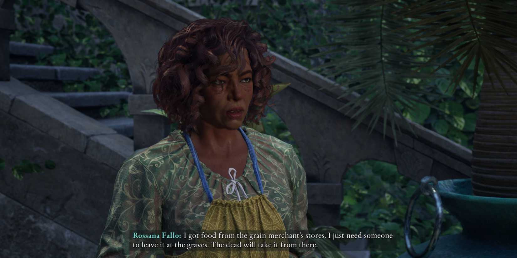 Hacerlo lo llevará a tres sitios diferentes donde los muertos están esperando. Todos ellos están rodeados de espíritus enojados, y tendrás que derrotar a los enemigos a medida que avanzas. Una vez que lo haga, dejará las ofrendas de alimentos en la tumba. Luego tendrá que regresar al Fior Mes Iverno y hablar con Rossana. Entonces puedes rezar con ella, pero mientras complete la búsqueda, ella te dará la bendición de Berathque es una baratija única que te protegerá contra los esqueletos.