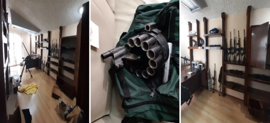 El MPF, con acompañamiento de policías federales ministeriales (PFM) y peritos especializados en diversas materias, en colaboración con elementos de la Sedena y la PF, cumplimentó el mandamiento judicial en el que se localizaron: 22 armas largas y seis cortas; 70 cargadores; dos lanza granadas, un tubo de cañón, 41 receptores para lanza granadas, cuatro cañones para lanza granadas, ocho granadas, calibre 40; un silenciador; diversas piezas para mecanismo de arma de fuego; dos mil 662 cartuchos de diversos calibres.