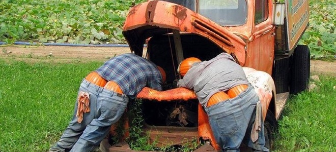 Eche un vistazo a su alrededor para encontrar accesorios que pueda utilizar en su decoración de Halloween. ¿Tienes heno? Haz espantapájaros. ¿Tu jardín arrojó más calabazas de las que puedes esperar tallar? Cree una exhibición para su porche o haga mecánicas de calabaza. Haybales, tallos de maíz, calabazas y escobas se pueden aprovechar.