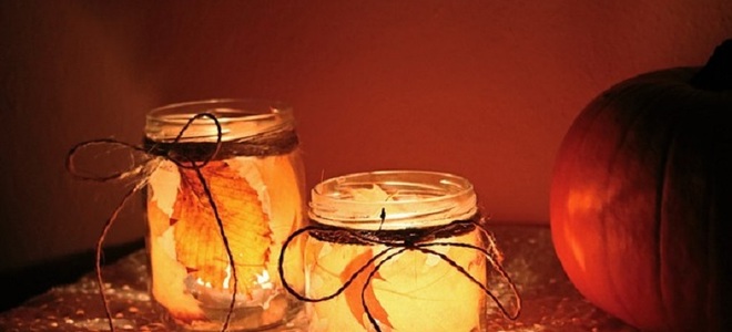 Las Jack-O-Lanterns son un estándar en Halloween. Caras locas, divertidas y aterradoras iluminadas por una vela interna dan la bienvenida a los traficantes en casi todas las puertas. Pero hay muchas otras formas divertidas de iluminar las vacaciones. Haz luminarias con bolsas de papel con temas de Halloween. Corte los diseños del frente, rellénelos parcialmente con arena o sal de Epson y coloque una vela. Cree una fila de ellos para alinear el camino de entrada u otro camino hacia la puerta principal. Los frascos de vidrio son otra opción fácil y festiva para crear una acogedora sensación de otoño. Use cinta con temática de Halloween, piñas pequeñas, hojas o pegatinas para decorar el exterior del frasco.