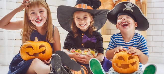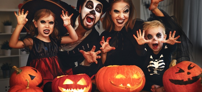 Saca la pintura facial y la máquina de coser para hacer algunos disfraces. Si es mejor con un libro de recetas que con una aguja, cree cerveza verde o naranja para los adultos y refresco de lima-limón para los más pequeños. Convierta los espaguetis en un montón de sesos. Diviértete con juegos espeluznantes con cuencos de comida repugnante escondidos detrás de un tablero. Haga que sus víctimas pasen la mano por un agujero en el tablero y adivinen qué están tocando. Hazle un alfiler a la zanahoria en el juego del espantapájaros con divertidas vendas para los ojos o diana con premios. Haz una corona de Halloween, construye un laberinto embrujado en tu garaje o crea fantasmas de gasa.
