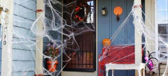 Arte una red. Use su aerosol de tela de araña para crear una tela de araña gigante en una esquina donde los que quieran pedir dulces puedan verla cuando estén en su puerta.