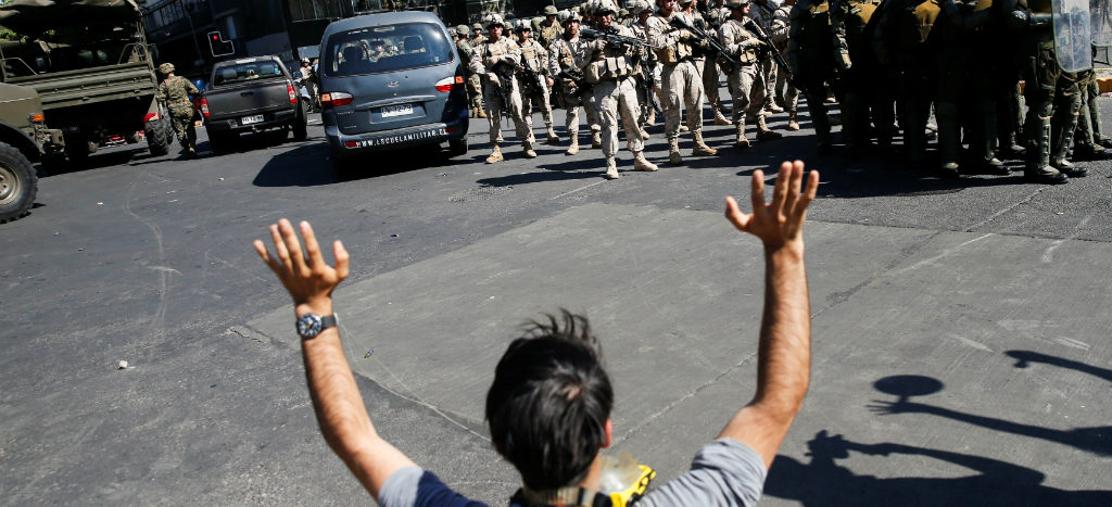 El presidente Piñera declaró el domingo que su país estaba “en guerra contra un enemigo poderoso”, luego de habilitar la intervención militar para controlar las protestas, que han dejado millonarios daños en el sistema del Metro.