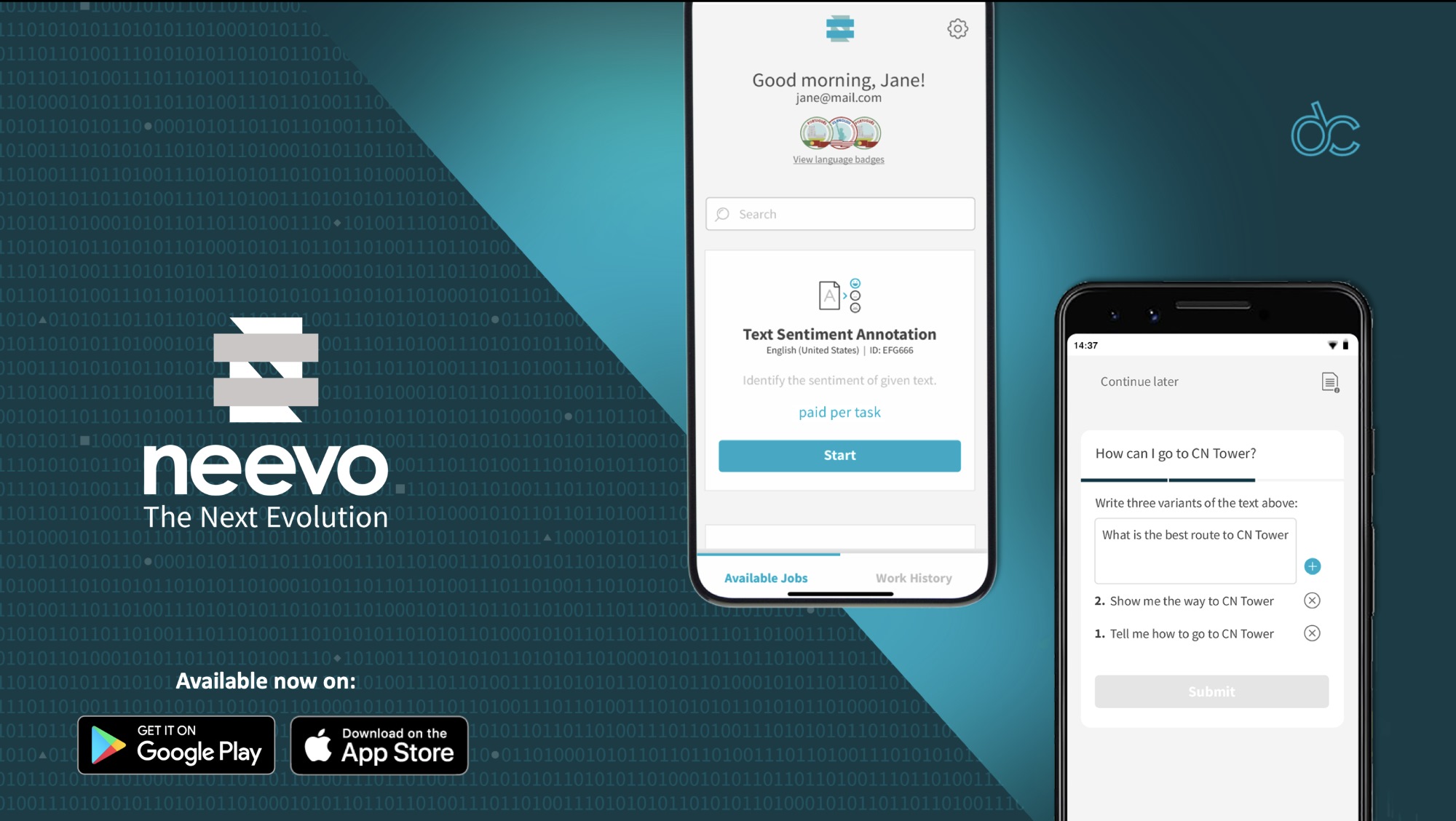 Con ese fin, DefinedCrowd ha creado su propia aplicación, que comparte la marca Neevo de la comunidad de anotaciones de la empresa, que permite que sus anotadores funcionen cuando lo deseen, abordando las tareas de anotación de imagen o voz sobre la marcha. Está disponible en iOS y Android a partir de hoy.