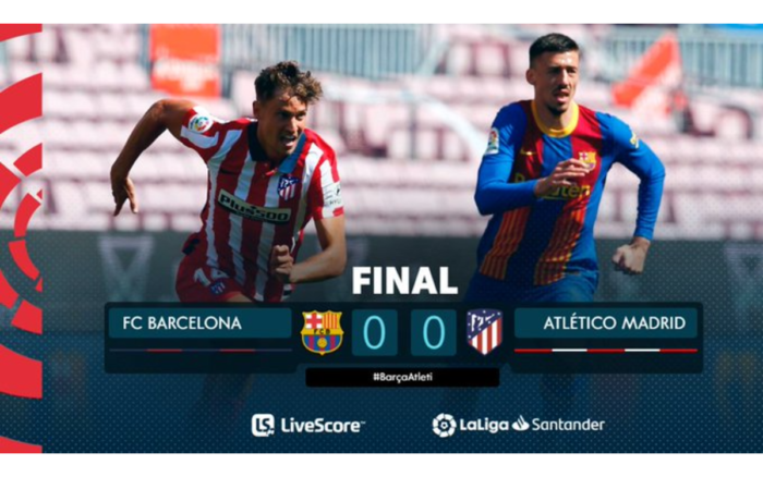 Atlético de Madrid y Barcelona igualaron sin goles este sábado en Camp Nou, encuentro correspondiente a la Fecha 35 de la Liga de España, resultado que deja la mesa servida al Real Madrid.