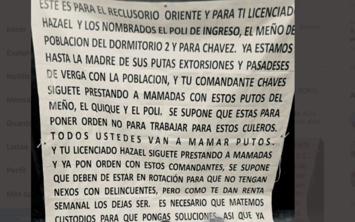 El mensaje es dirigido contra custodios y el subsecretario del Sistema Penitenciario de la Ciudad de México, Hazael Ruíz, quien ya ha recibido este tipo de mensajes previamente.
